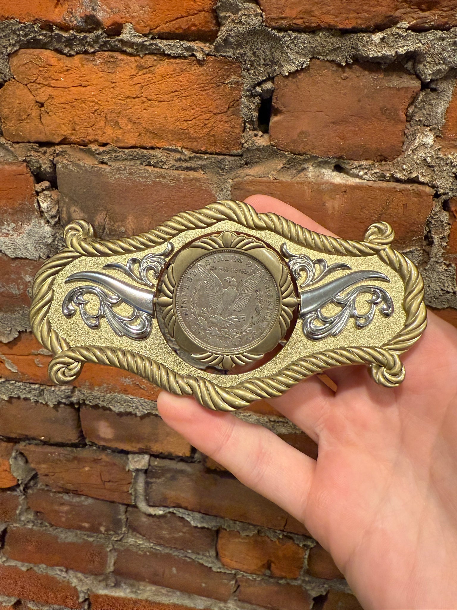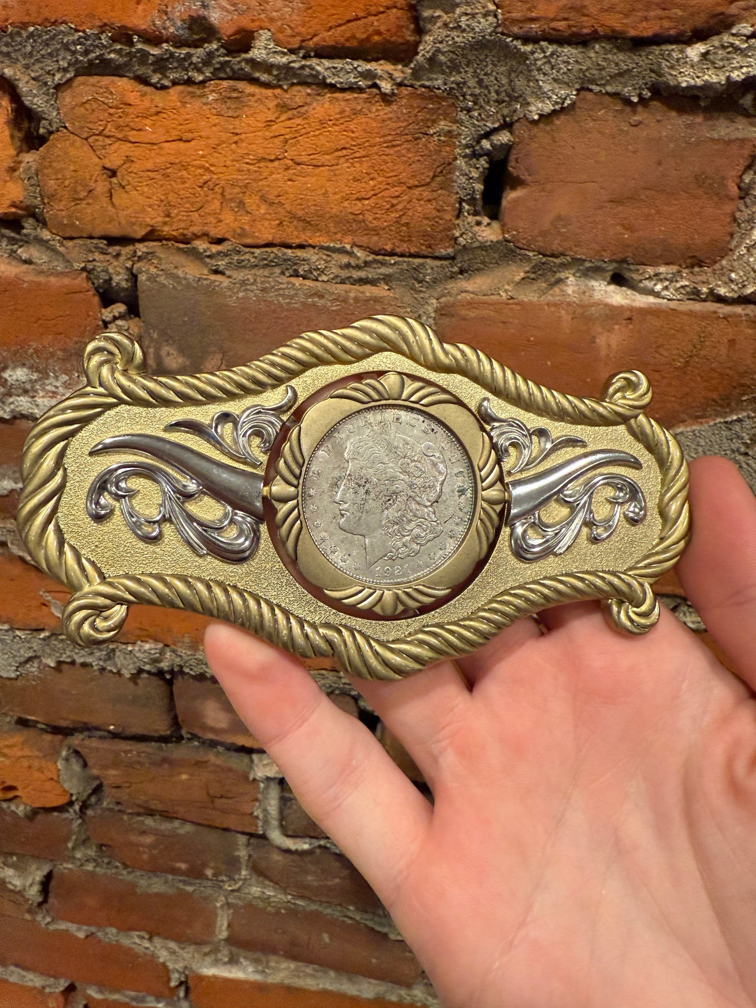 1921 Silver Dollar Flipping Belt Buckle