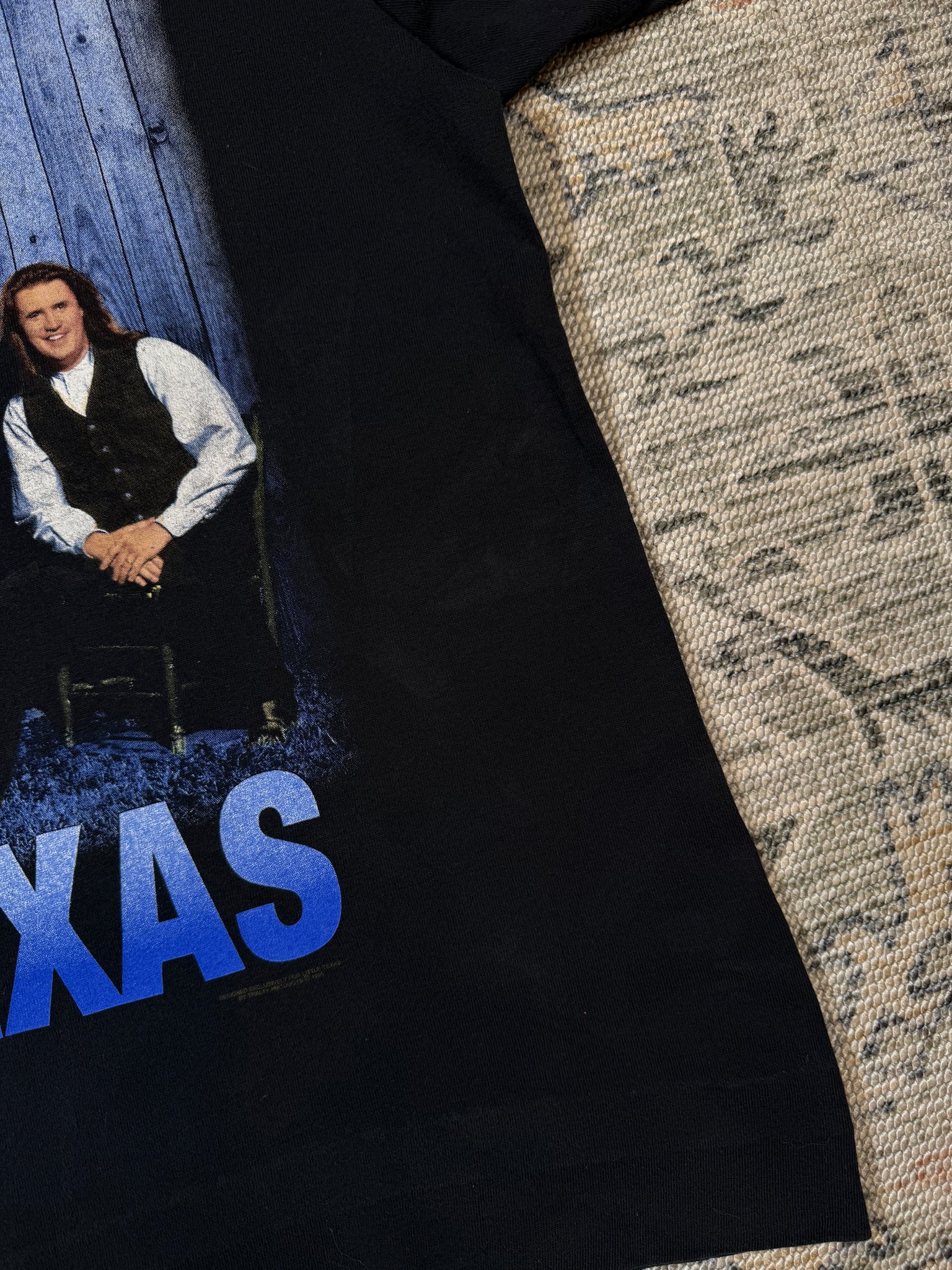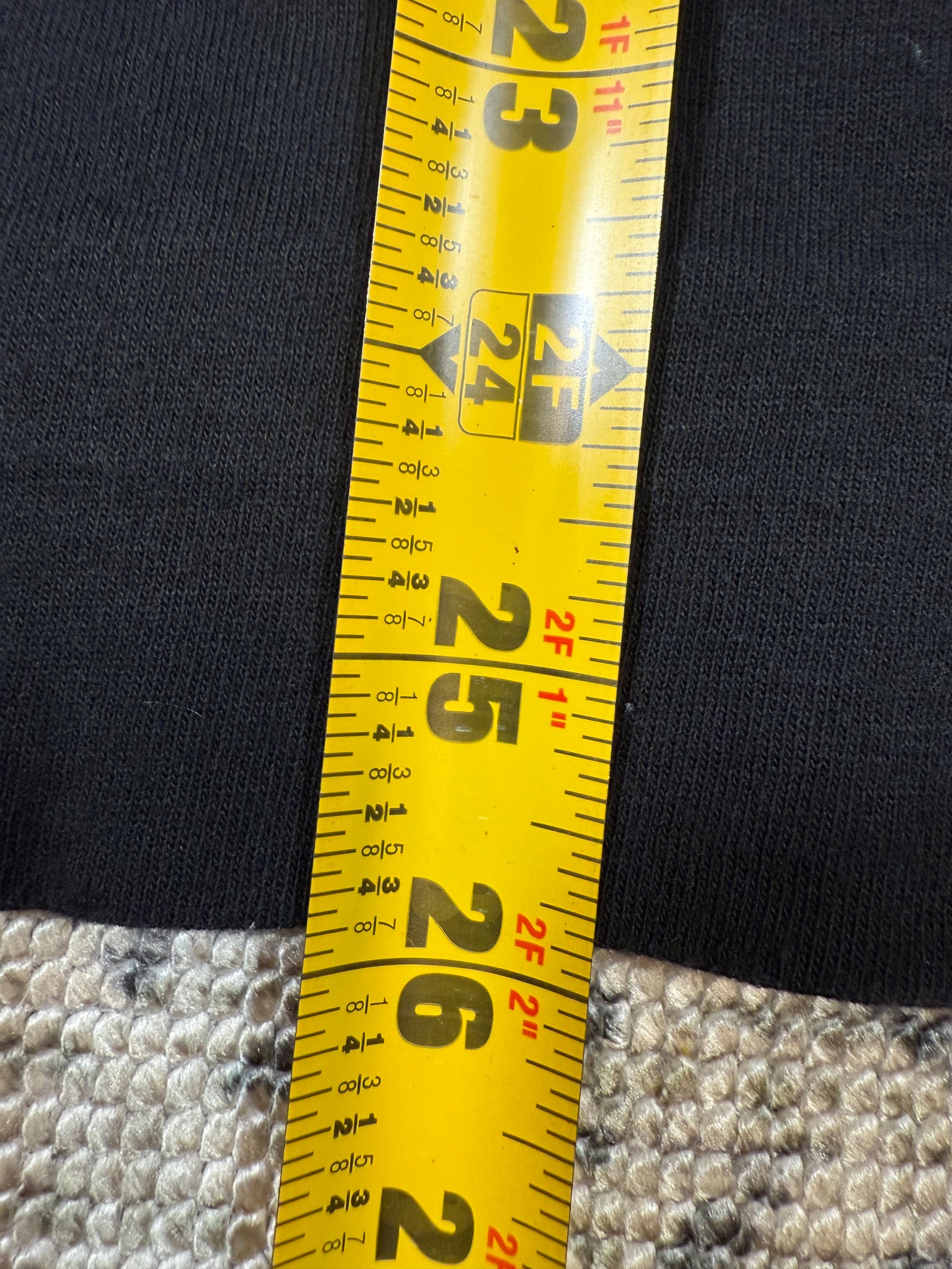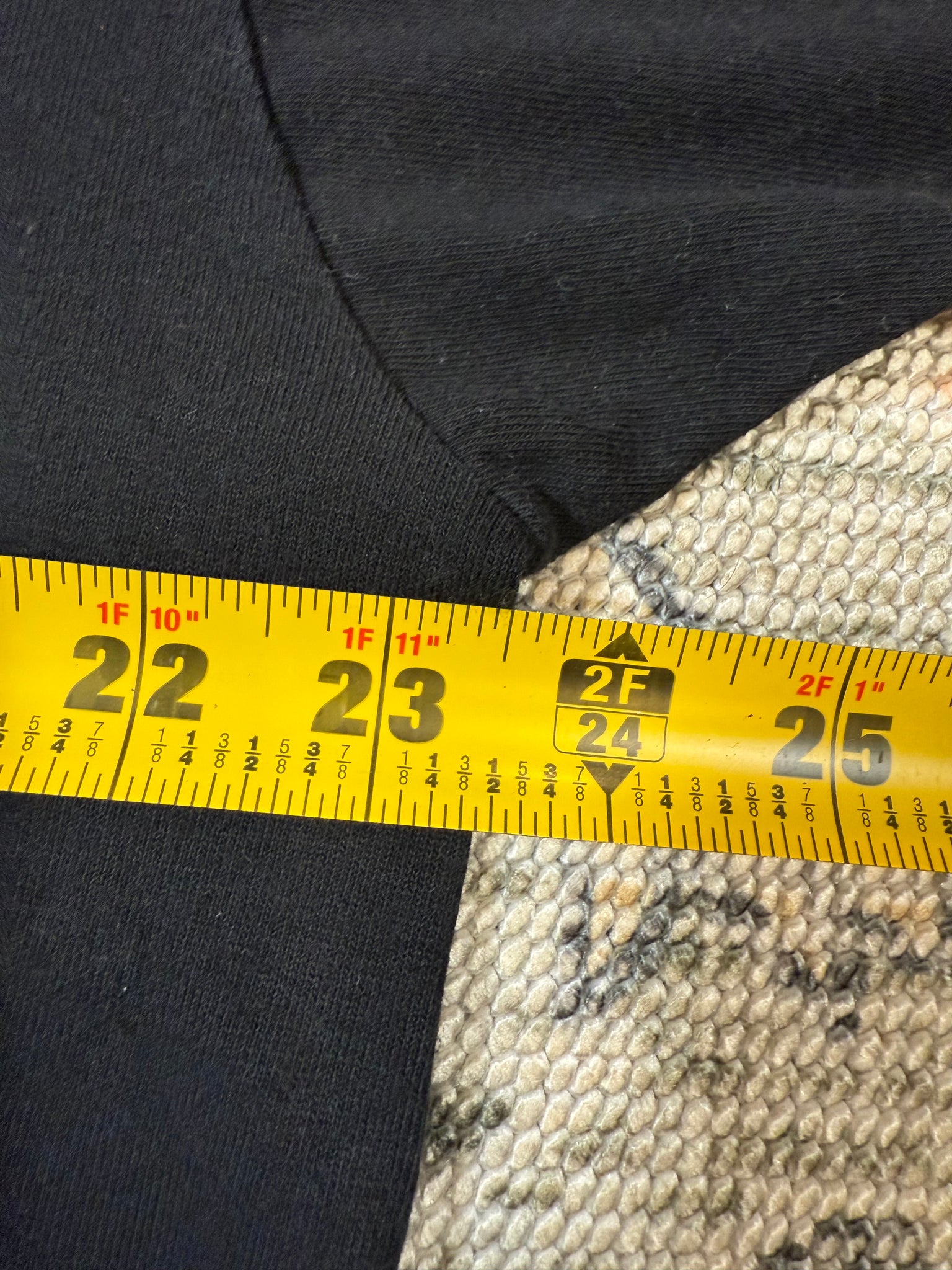 Size: cropped mens XL, bottom has been hemmed, but could be in-sewed to be longer again